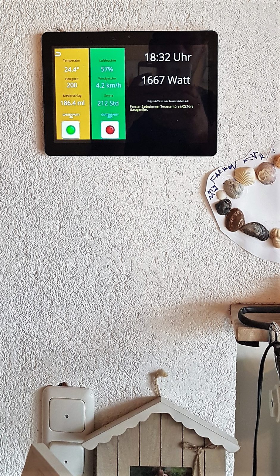 Wenn alles funktioniert, kann das Tabelt, wie bei mir, mit auf die Terrasse genommen werden, oder einfach an der Wand hängen.