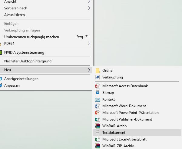 Als nächstes erstellen wir uns eine Textdatei auf dem Desktop.