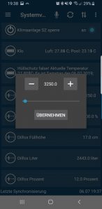 Allerdings „spiele“ ich derzeit noch mit der richtigen Laufzeit. Ich musste jedes Mal die WebUI aufzumachen und den Wert abändern. Das ist mir dann mit der Zeit doch etwas lästig geworden. Bei der letzten Änderung ist mir dann aufgefallen, dass hier auch eine Systemvariable, anstelle des fixen Wertes eingefügt werden kann. So kann der Wert nun auch über Redmatic, Tinymatic, Home24, usw. geändert werden.