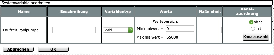 Und jetzt läuft die Poolpumpe nur noch so lange, wie es die Variable vorgibt und kann in anderen Programmen verwendet werden.