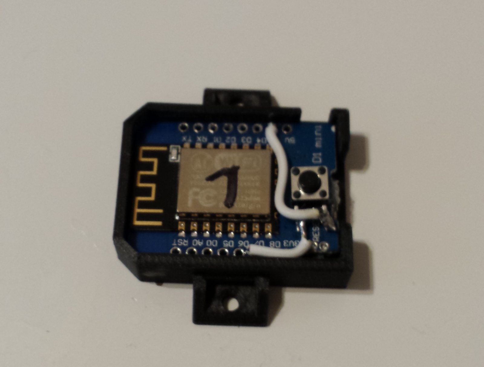 Jerome Pech hatte die Idee, das Ganze mit einem ESP zu realisieren. Der ESP an sich ist bereits das fertige Modul. Das einzige was benötigt wird, ist ein Taster, der an Ground „G“ und „D7“ angeschlossen wird. Da wir den Button nicht dauerhaft benötigen, können die beiden Kontakte während der Konfiguration auch mit einem Kabel überbrückt werden, welche danach wieder abgenommen werden können.