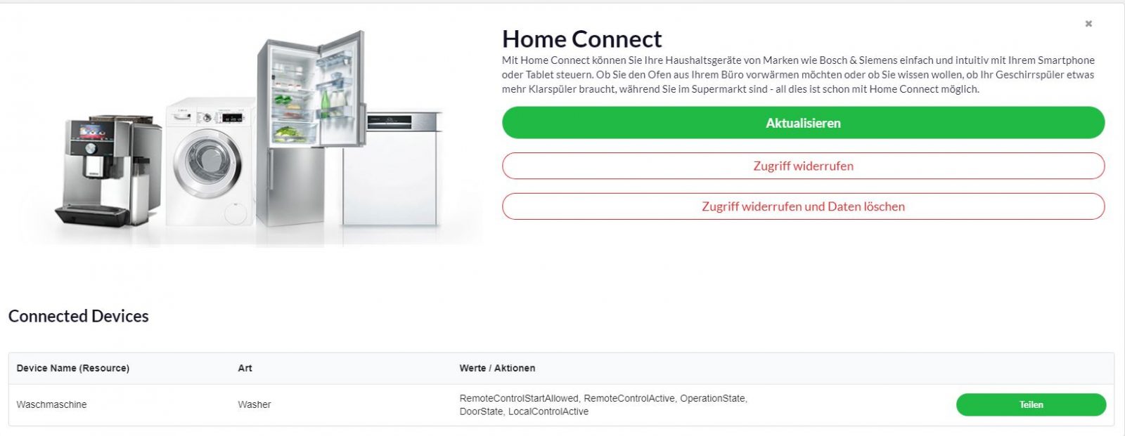 Anbieter nutzen. z.B. ist bei Conrad Connect ist es möglich, den Status der Waschmaschinentüre abzufragen, was ich der App nicht möglich ist. Also werden dem Käufer nicht alle Daten zugänglich gemacht.