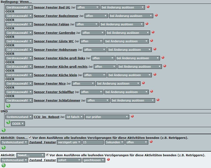 Mit den Türen funktioniert das genauso. Am Ende nutze ich die Systemvariablen auf meiner Startseite und als Trigger für ein Script, welches mit als Text ausgibt, welche Türe, bzw. welches Fenster offen steht.