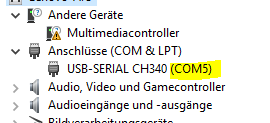 Um den ESP mit der Arduinosoftware zu verbinden, benötigt man erstmal den COM-Port des ESP. Hierzu unter Windows 10, rechtsklick auf „Start“ und „Gerätemanger“ die Nummer suchen und rechts unten mit dem erkannten der Software überprüfen. Steht rechts unten noch COM1 muss der Port noch geändert werden. Das geht so.