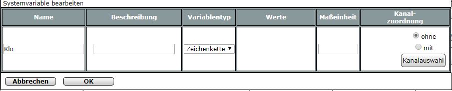 Nach einem Update von Jerome ist es nun auch möglich direkt Systemvariablen auf dem Display ausgeben zu können. Hierzu ist eine Variable vom Typ „Zeichenkette“ anzulegen.
