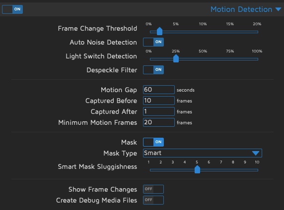- Frame Change Threshold (je kleiner die Zahl, desto empfindlicher die Erkennung)