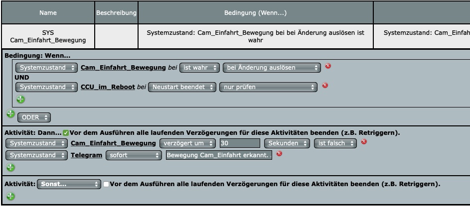 Zuletzt benötigen wir noch ein Programm, welches die Variable nach einer gewissen Zeit wieder auf „falsch“ zurücksetzt. In dem selben Programm lasse ich mir noch eine Telegram Push Nachricht schicken, damit ich die Erkennung optimieren kann.