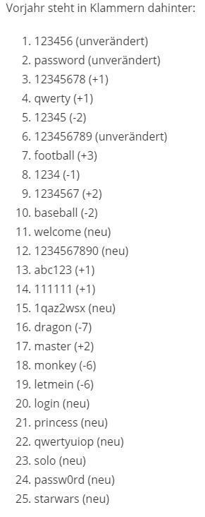 Auch die Hacker haben Zugang zu den Listen und sind häufig nicht ganz doof. Daher sollten solche Passwörter umgehend geändert werden.