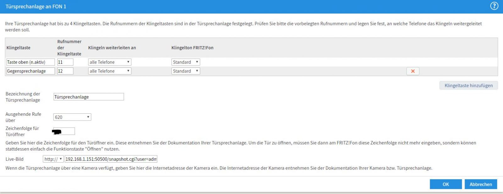 Die Doorline wird an die Klingeldrähte angeschlossen, die dann zur Türglocke und den Klingeltrafo gehen. Zwei Adern davon müssen an den FON Anschluss der FritzBox. Dort wird die Gegensprechanlage wie ein normales Telefon in der FritzBox eingerichtet.