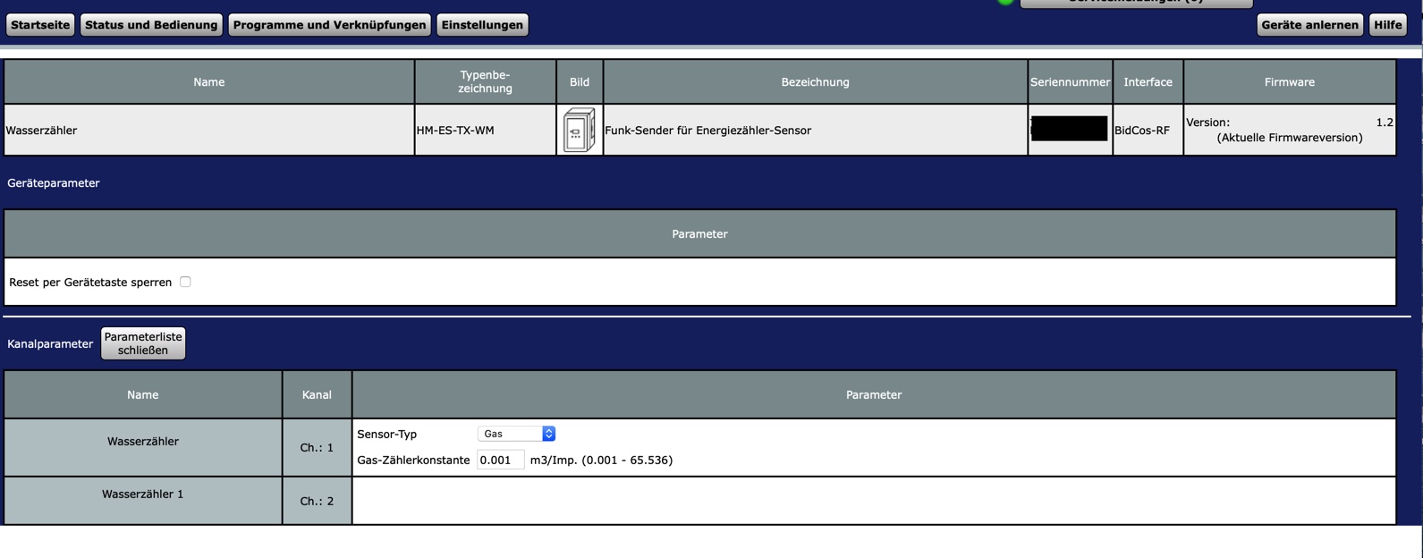 Wasserzähler in Homematic